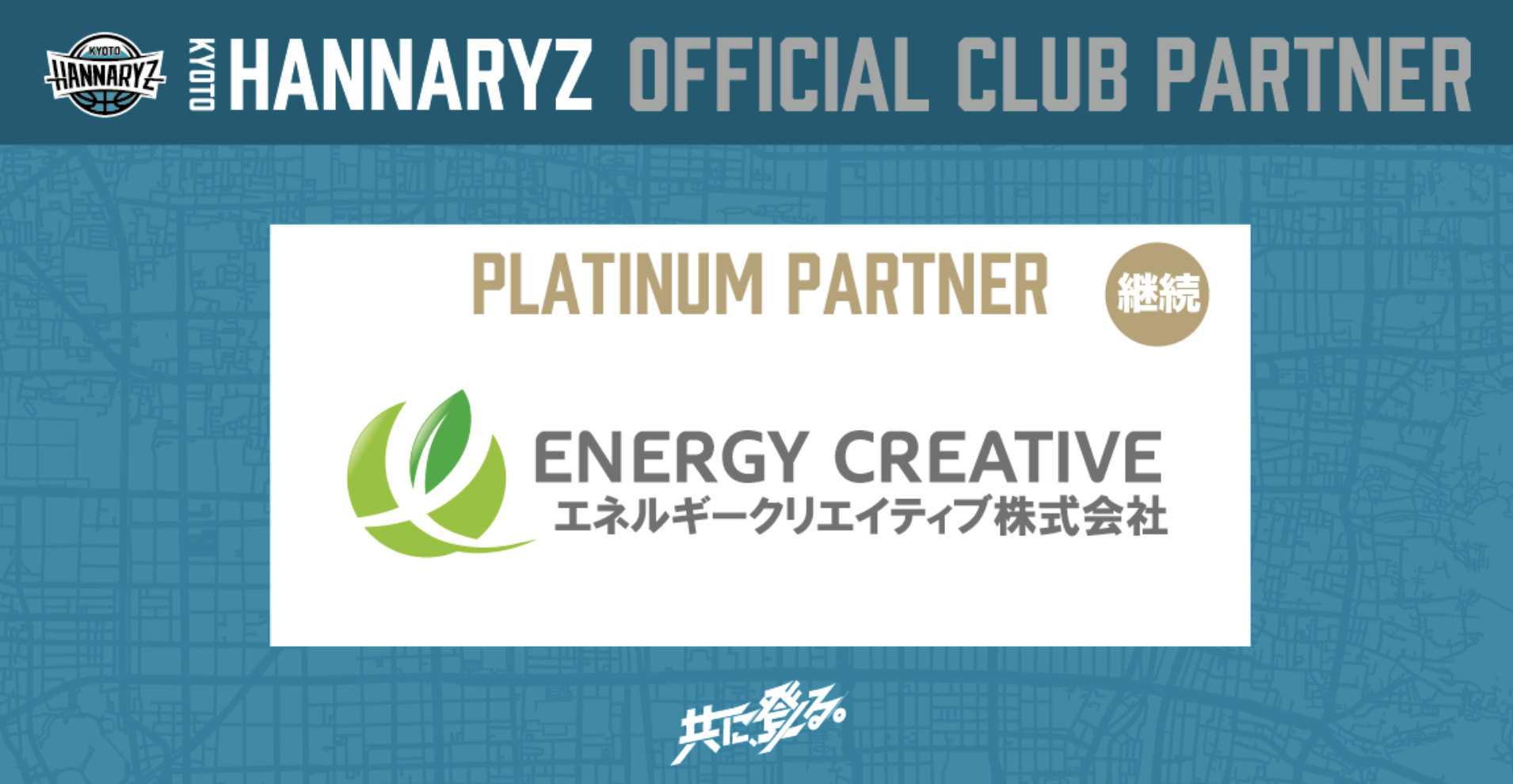 エネルギークリエイティブ株式会社は、2025-2026シーズンも引き続き京都ハンナリーズのプラチナパートナーとして、京都府民の皆様、そして熱い想いで応援されているブースターの皆様と共に、全力でチームを応援してまいります。